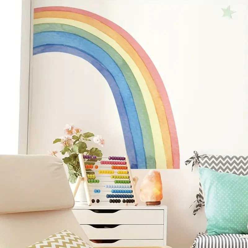 Elevate your child's nursery or playroom with our Watercolour Rainbow Wall Sticker. This half rainbow decal brings a burst of vibrant colours and positivity, featuring a gracefully designed rainbow in soft and soothing watercolour hues. Easy to apply, reposition, and remove without damaging your walls, and perfect for sparking your child's imagination and creating a cheerful atmosphere. In pastel shades, this rainbow has been designed to look like it's been hand painted on the wall.