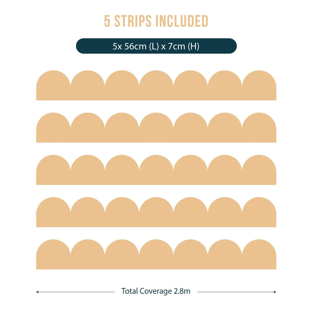 Add a soft, playful finish to your child’s room with our Scallop Border Wall Stickers. Designed to bring a gentle touch of charm to any doorway, shelf edge, or wall, these decals are perfect for framing spaces or creating a subtle pop of colour in a minimalist nursery.