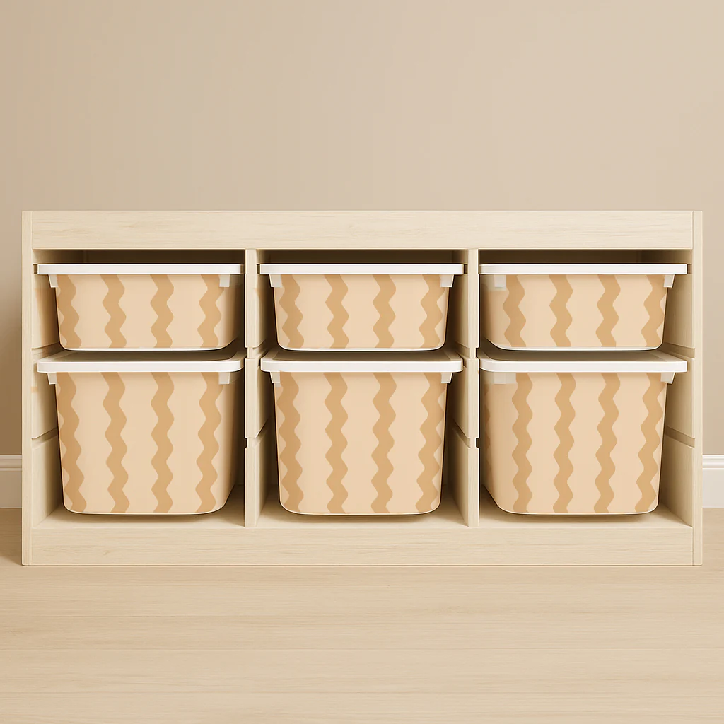 Transform your IKEA Trofast unit with our Soft Wiggle drawer stickers – a beautifully simple way to add gentle movement, warmth and character to your storage.